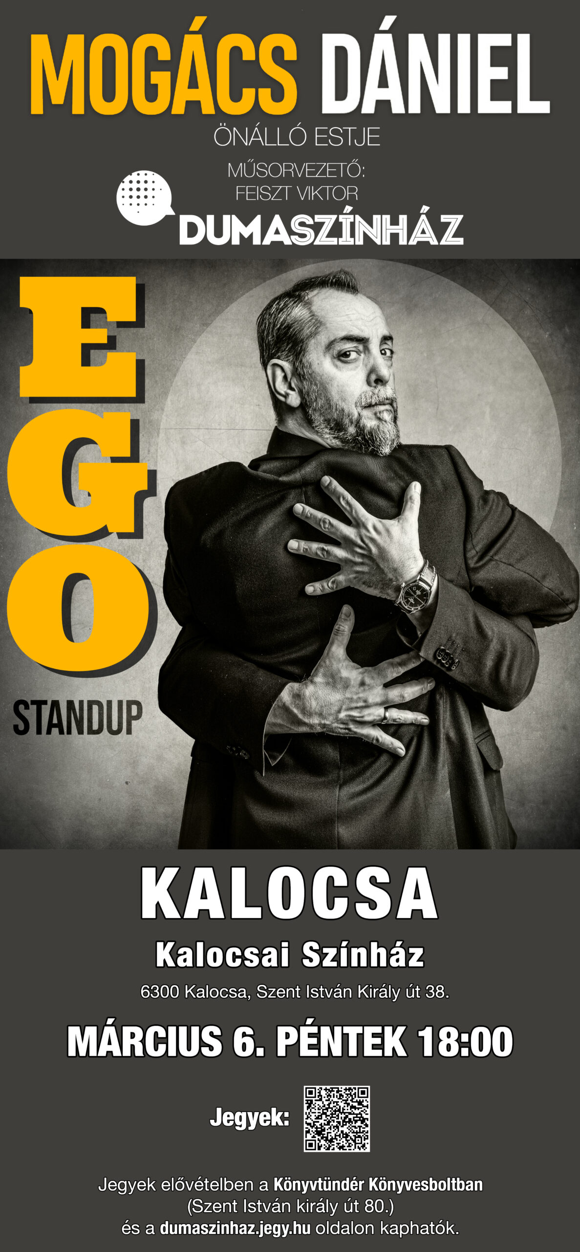 Jegyek elővételben a Könyvtündér Könyvesboltban (Kalocsa, Szent István király út 80.) és a dumaszinhaz.jegy.hu weboldalon oldalon kaphatók.
